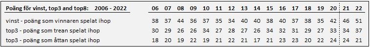 4. Det är också så att ex 10p för tour-vinst slår 10p för tredjeplats i majorn.