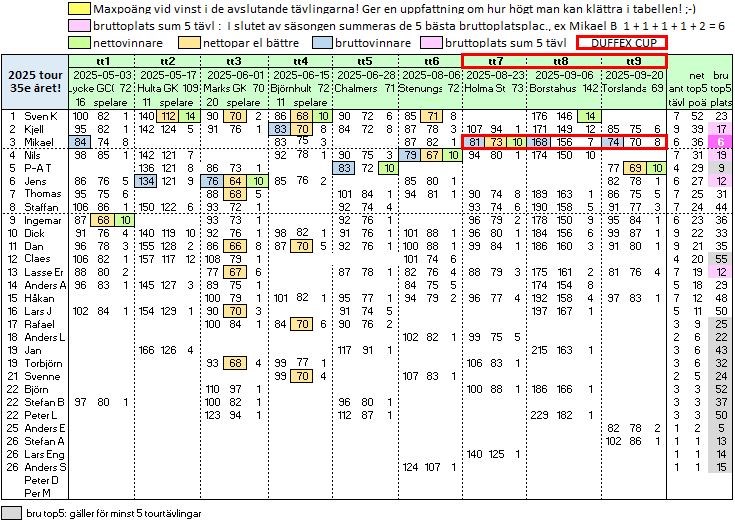 - Mikael vinner bruttopriset (liksom 2024) med en fin bruttosegerrad: 1 + 1 + 1 + 1 + 2 = 6!